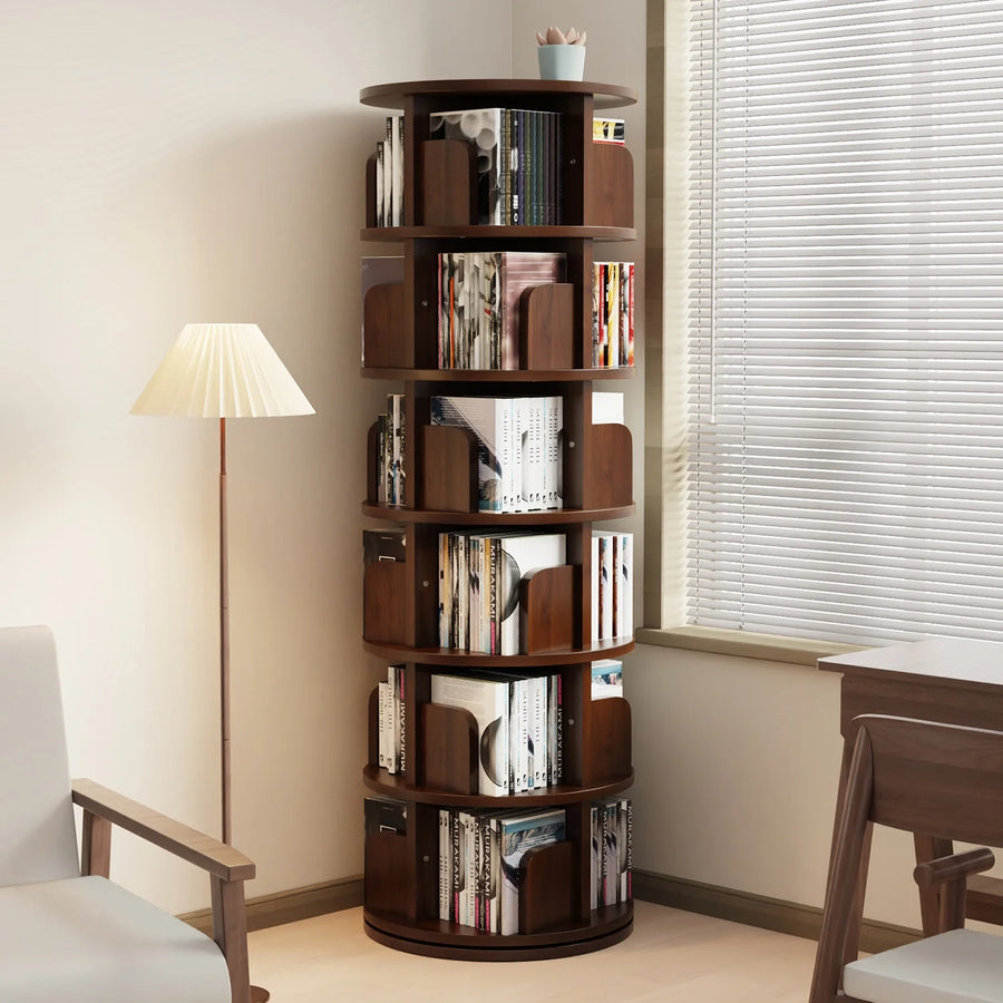 Solid Wood 360 Degree Rotating Bookcase Corner Tall Bookshelf