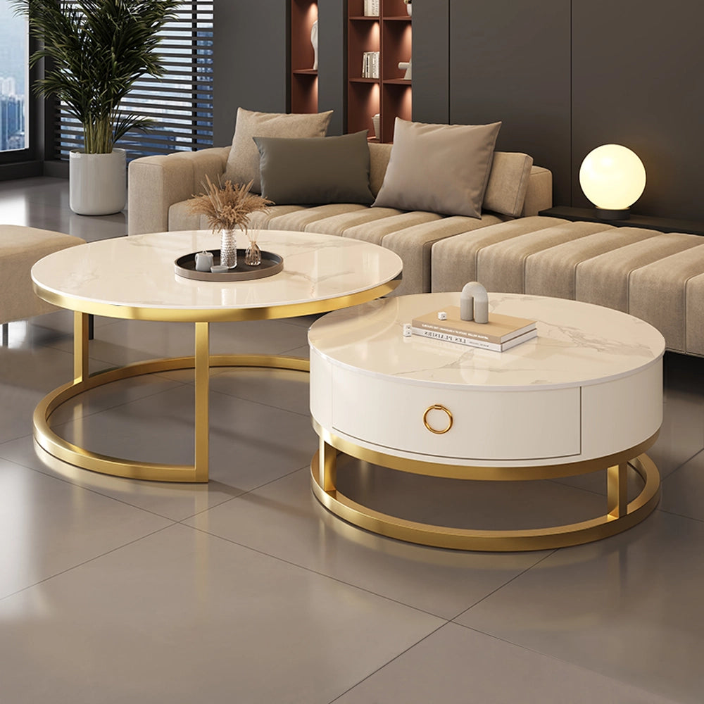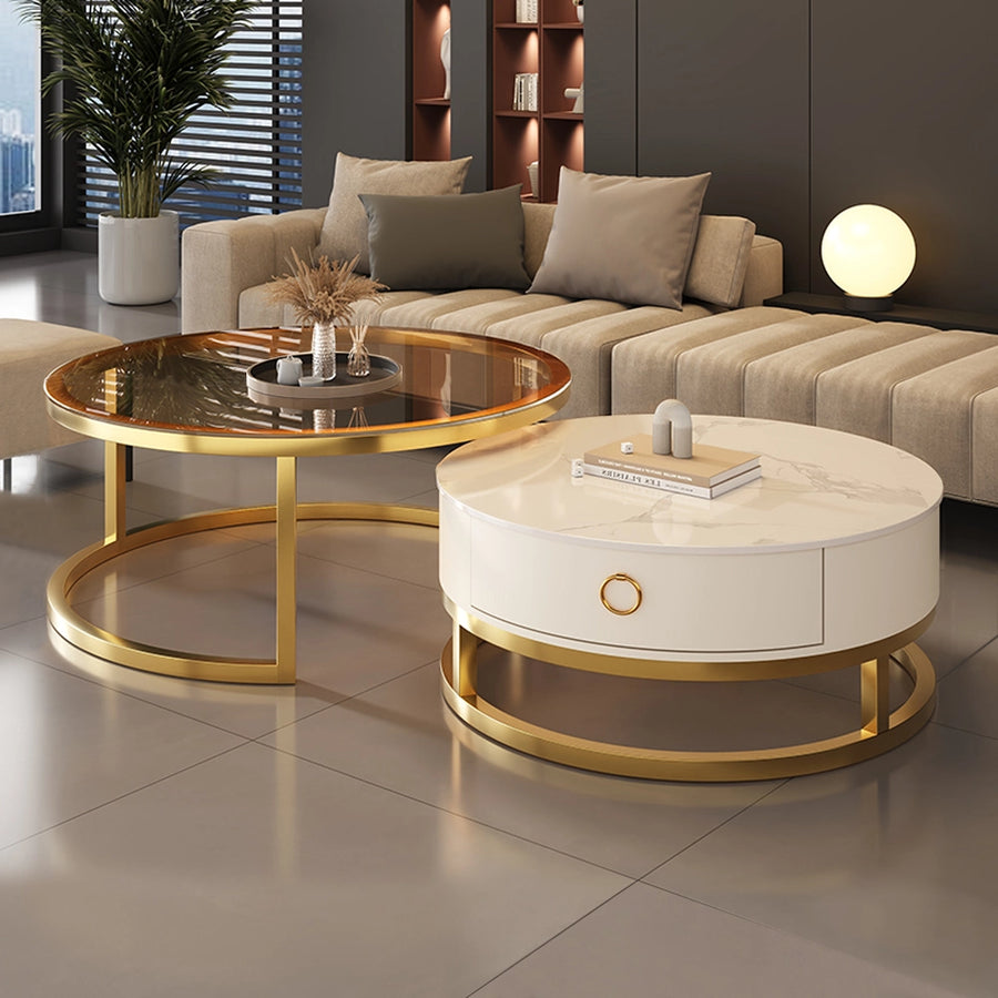 Round Nesting Faux Marble and Glass Coffee Table Set