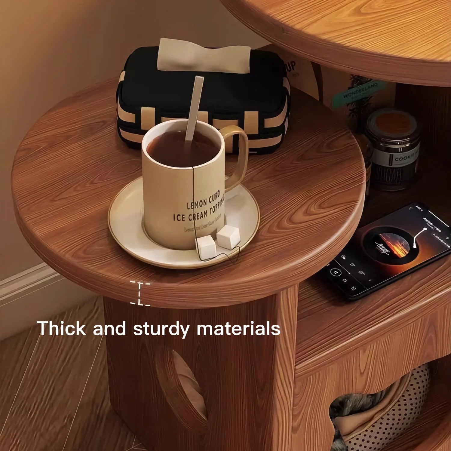 Featuring a tiered structure, this multi-purpose table serves both as a stylish storage unit and a cozy pet nook. Its fine wood texture and sturdy build ensure long-term use. Functional yet decorative, it’s perfect for bedrooms, balconies, or living rooms to add warmth and character.