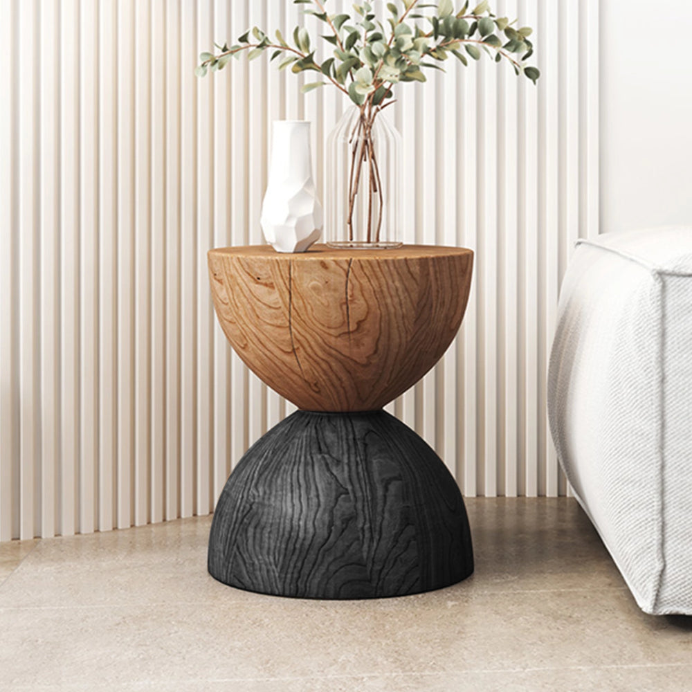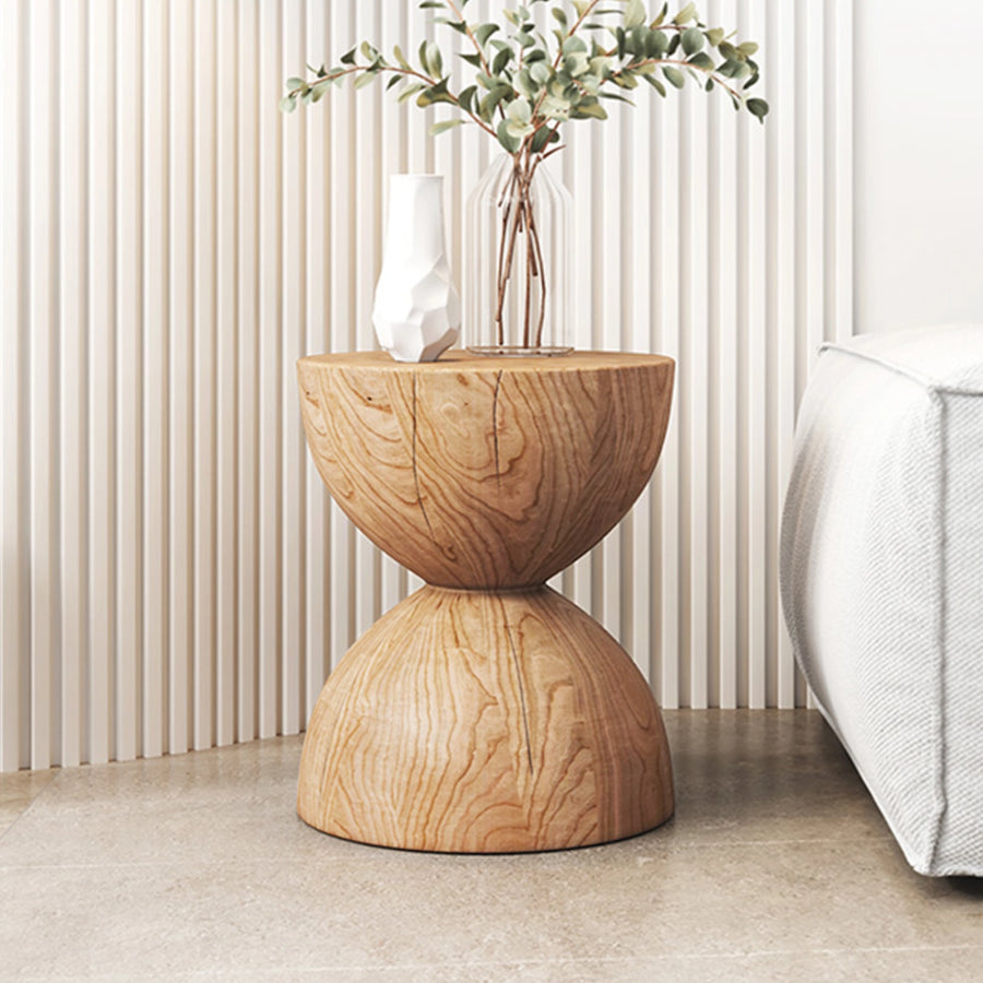 Solid Wood Round Side Table Funnel Shaped End Table