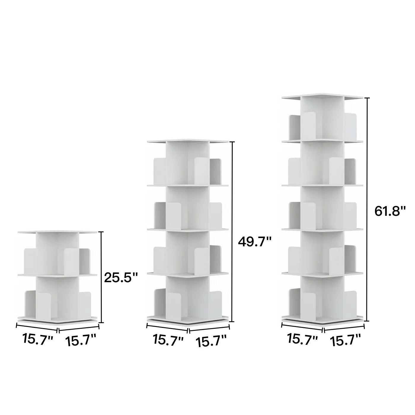 White Wooden Rotating Bookcase Square Tall Standing Bookshelf