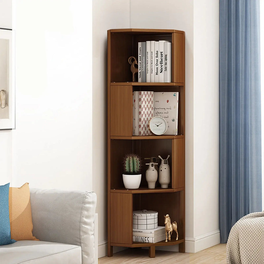 Corner multi-level shelf can be used anywhere you want (office, study, living room, bedroom, bathroom, bar, etc.), this corner bookshelf has enough space to display and store your books, plants, watches, bags, clothes and other items.