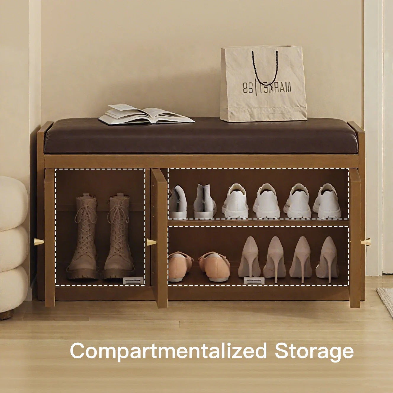 Vintage Shoe Storage Bench with Soft Cushion for Hallway
